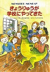トムがそとを見ていると、こうていのむこうから小さなきょうりゅうがあらわれました。きょうしつは大さわぎです。